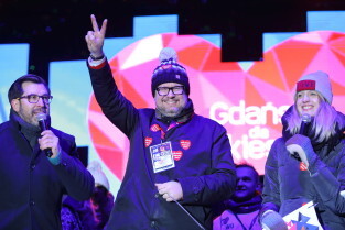 Gdańsk. 26 finał Wielkiej Orkiestry Świątecznej Pomocy. Koncert Mrozu i Światełko do Nieba. Nz. (S) Prezydent Gdańska Paweł Adamowicz.