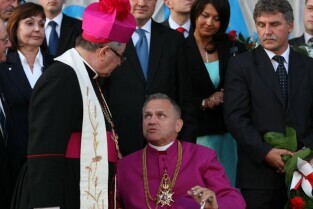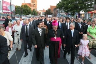 Gdańsk. 29. rocznica Porozumień Sierpniowych. Nz. msza święta w kościele św. Brygidy