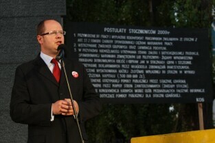 Gdańsk. 29. rocznica Porozumień Sierpniowych. Nz. Przewodniczący NSZZ Solidarność Janusz Śniadek