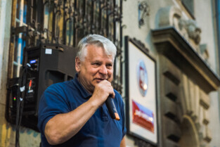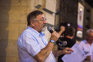 Gdańsk, ul. Nowe Ogrody. 30. lipca - kolejny dzień protestów pod Sądem Okręgowym w Gdańsku. Nz. wicemarszałek Senatu RP Bogdan Borusewicz