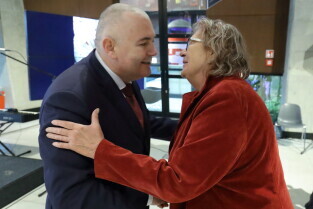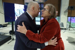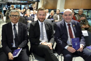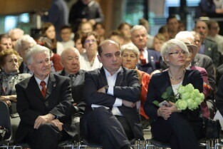 Gdańsk, Europejskie Centrum Solidarności. Uroczystość 30 lecia powstania Związku Byłych Więźniów Politycznych. Nz. Andrzej Kowalczys, Ryszard Świlski i Piotr Kowalczuk.