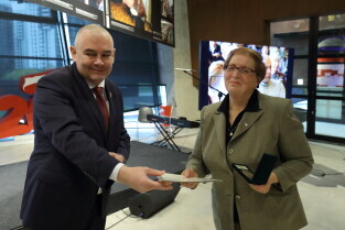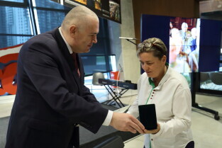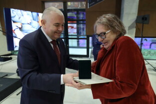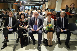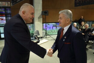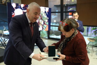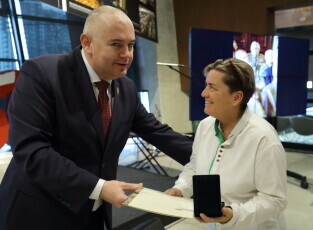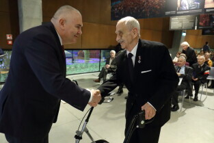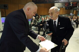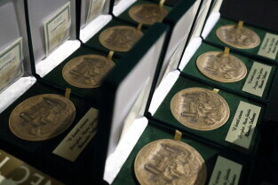 Gdańsk, Europejskie Centrum Solidarności. Uroczystość 30 lecia powstania Związku Byłych Więźniów Politycznych. Nz. Wiceprezydent Gdańska Piotr Kowalczuk wręcza medale Prezydenta Miasta Gdańska.