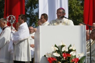Gdańsk, Pl. Solidarności. Msza św. w 30 rocznicę powstania NSZZ Solidarność i podpisania Porozumień Sierpniowych w 1980 r. Nz. Metropolita Gdański abp Sławoj Leszek Głódź
