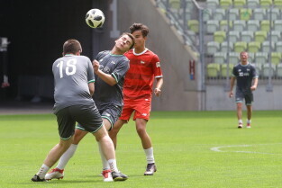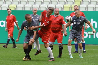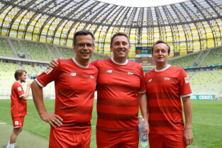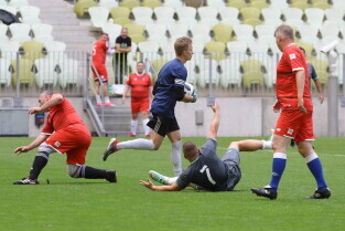 Gdańsk. AmberExpo i Przyjaciele - Wielki Festyn Rodzinny. Nz. Mecz Amberexpo kontra Przyjaciele.