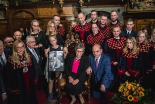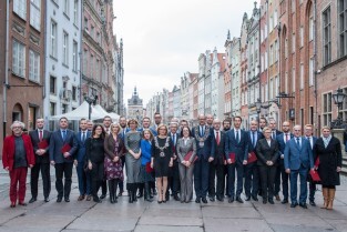 Pamiątkowa fotografia radnych kadencji 2014-2018 na schodach siedziby Rady Miasta Gdańska