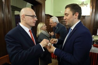 Gdańsk, Dwór Artusa. Uroczysta sesja Rady Miasta Gdańska. Wręczenie medali św. Wojciecha i Księcia Mściwoja II, jeden z nich otrzymał pośmiertnie prezydent Gdańska Paweł Adamowicz