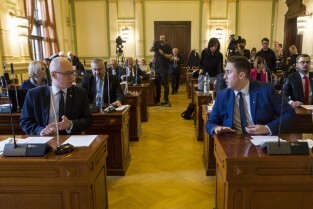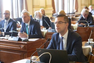 Sesja Rady Miasta Gdańsk w Nowym Ratuszu. Nz. radny Cezary Śpiewak-Dowbór, przewodniczący klubu PO