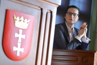 Sala obrad wyposażona jest w specjalne biuro dla prezydenta Gdańska. Na zdjęciu Aleksandra Dulkiewicz