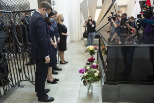 Gdańsk. Uroczystości 31 rocznicy wyborów czerwcowych 1989 z udziałem Aleksandry Dulkiewicz i Rafała Trzaskowskiego. Złożenie kwiatów przy grobach Pawła Adamowicza i Macieja Płażyńskiego w kościele mariackim