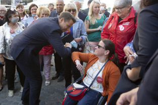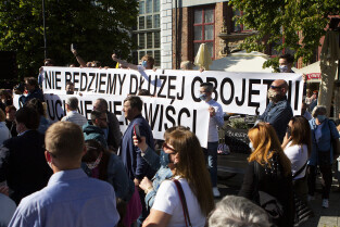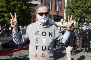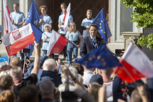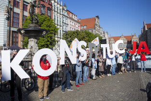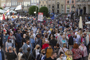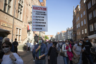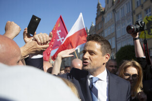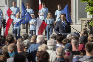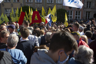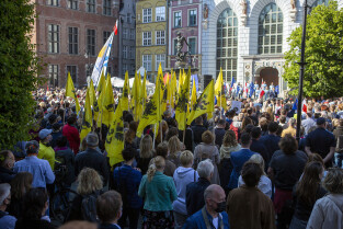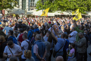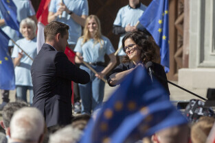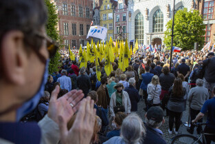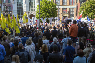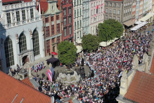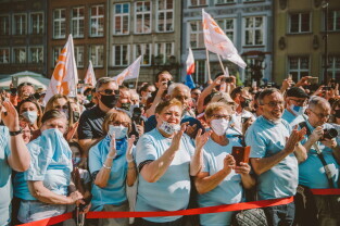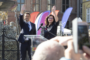 Gdańsk. Uroczystości 31 rocznicy wyborów czerwcowych 1989 z udziałem Aleksandry Dulkiewicz i Rafała Trzaskowskiego. Wiec na Długim Targu