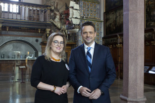 Gdańsk. Uroczystości 31 rocznicy wyborów czerwcowych 1989 z udziałem Aleksandry Dulkiewicz i Rafała Trzaskowskiego. Wizyta w Dworze Artusa