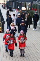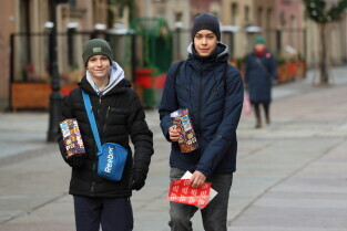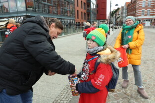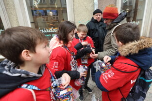 Gdańsk. 32. FINAŁ WOŚP. Wolontariusze na ulicach Gdańska.
