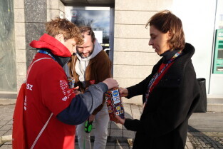 Gdańsk. 32. FINAŁ WOŚP. Wolontariusze na ulicach Gdańska.
