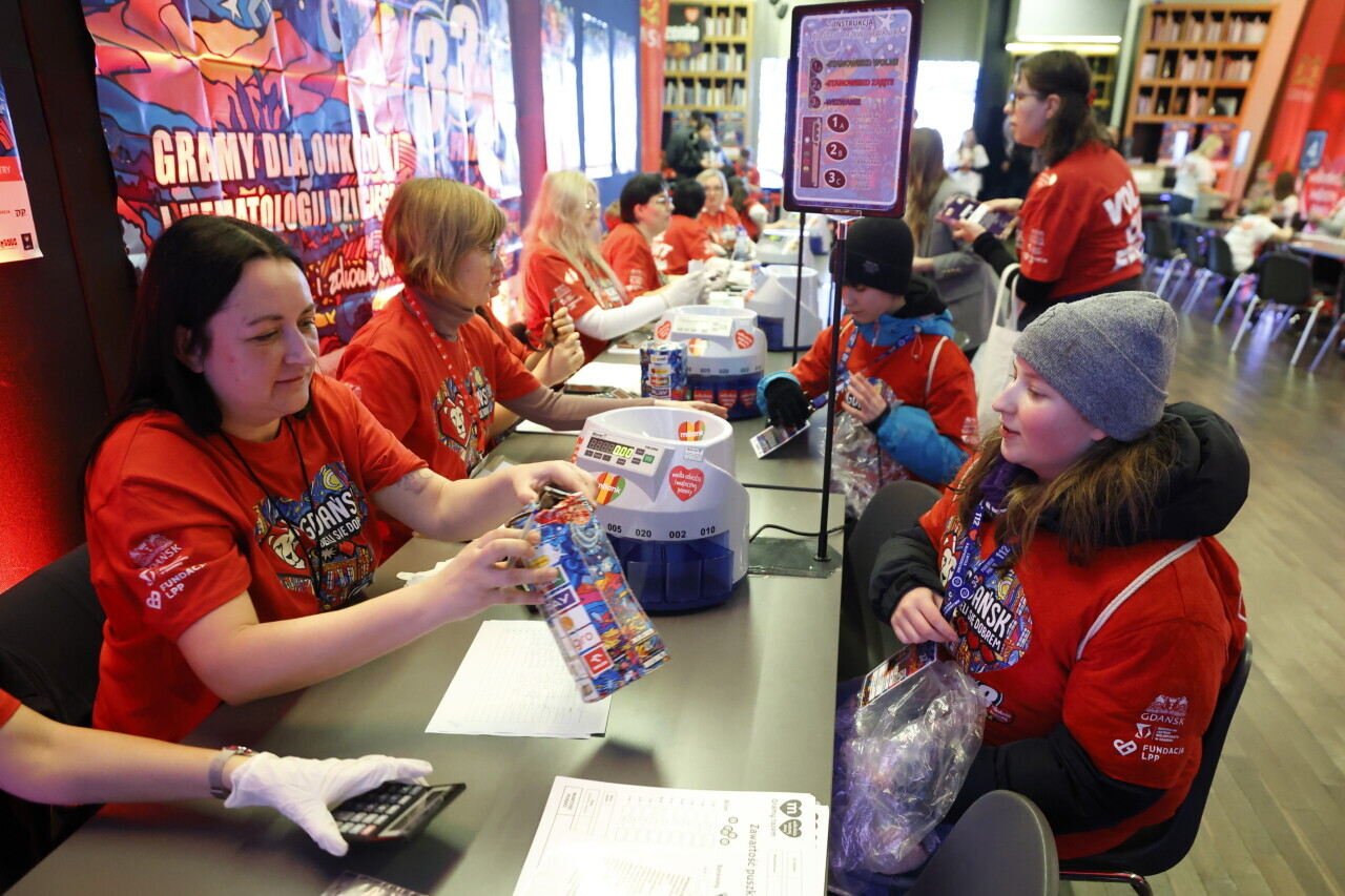 Gdańsk. 33 finał WOŚP. Bank, rozliczanie wolontariuszy.