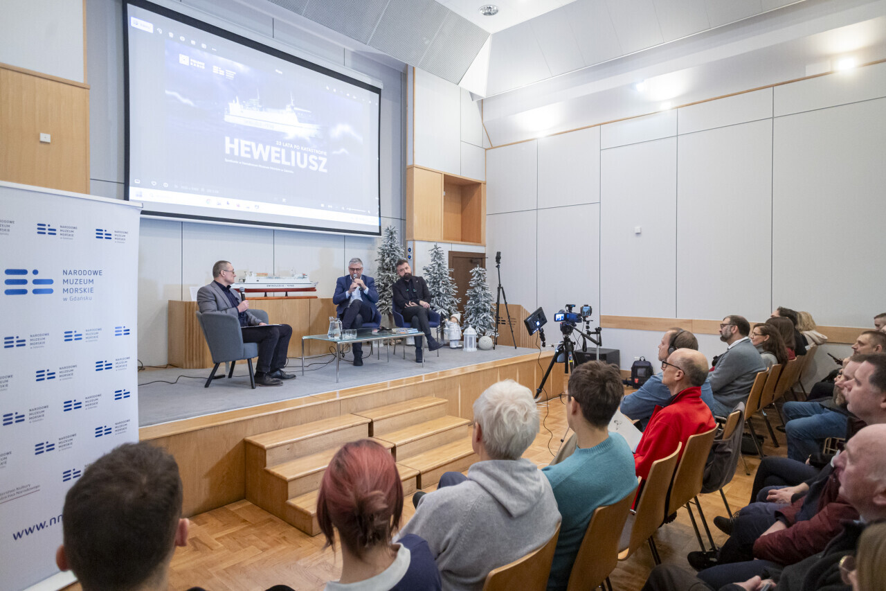 Gdańsk. W 33 rocznicę zatonięcia polskiego promu Jan Heweliusz w Narodowym Muzeum Morskim odbyło się spotkanie z autorem podcastu o tej katastrofie, redaktorem polskiego radia Romanem Czejarkiem oraz pilotem śmigłowca ratowniczego Robertem Zawadą
