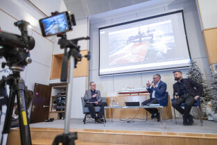 W 33 rocznicę zatonięcia polskiego promu Jan Heweliusz w Narodowym Muzeum Morskim odbyło się spotkanie z autorem podcastu o tej katastrofie, redaktorem polskiego radia Romanem Czejarkiem oraz pilotem śmigłowca ratowniczego Robertem Zawadą