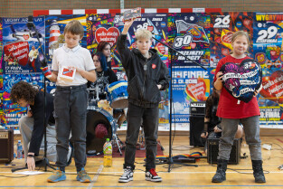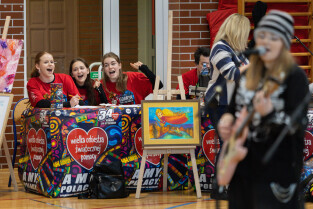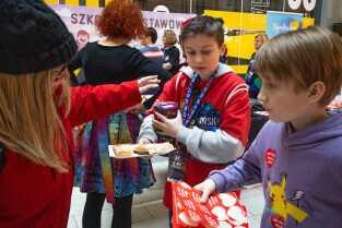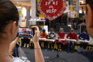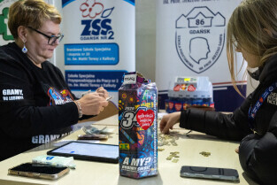Gdańsk. W dniu 34 finału Wielkiej Orkiestry Świątecznej Pomocy na ulice miasta ruszyło tysiące wolontariuszy. Nz. Sztab WOŚP w Zespole Szkolno-Przedszkolnym nr 8