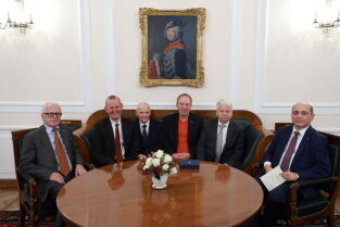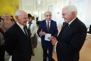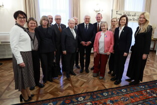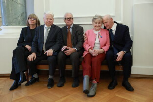 Niemcy, Berlin. 35. Rocznica Upadku Muru Berlińskiego. Nz. Bogdan Borusewicz | senator RP, organizator strajku w sierpniu 1980, Ewa Kulik-Bielińska | dyrektorka Fundacji Batorego, Bogdan Lis | przewodniczący Rady ECS, sygnatariusz Porozumień Gdańskich w sierpniu 1980, Grażyna Staniszewska | działaczka społeczna, członkini opozycji demokratycznej w Polsce, Jacek Taylor | sekretarz Rady ECS i prawnik, działacz opozycji antykomunistycznej.
