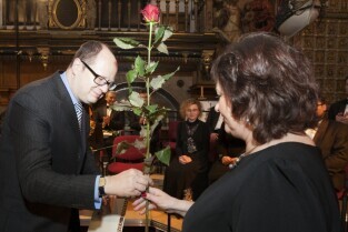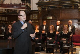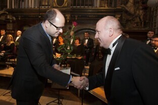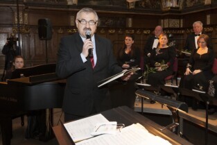 Gdańsk, Dwór Artusa. Koncert Jubileuszowy z okazji 35-lecia Polskiego Chóru Kameralnego Schola Cantorum Gedanensis. Nz. Wiceprzewodniczący Rady Miasta Gdańska Jacek Teodorczyk
