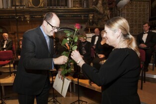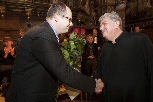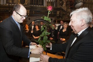 Gdańsk, Dwór Artusa. Koncert Jubileuszowy z okazji 35-lecia Polskiego Chóru Kameralnego Schola Cantorum Gedanensis. Nz. Prezydent Gdańska Paweł Adamowicz