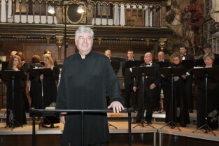 Gdańsk, Dwór Artusa. Koncert Jubileuszowy z okazji 35-lecia Polskiego Chóru Kameralnego Schola Cantorum Gedanensis. Nz. Dyrygent Jan Łukaszewski