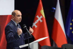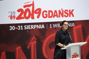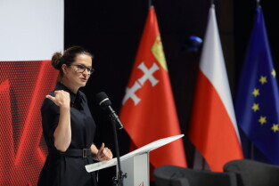 Gdańsk, 39. rocznica Porozumień Sierpniowych. Medale Wdzięczności otrzymali: Frans Timmermans, Myrosław Marynowycz i Gábor Demszky. Nz. Prezydent Gdańska Aleksandra Dulkiewicz.