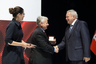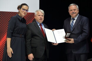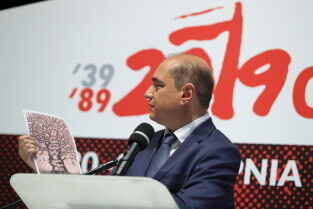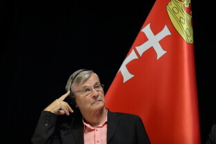 Gdańsk, 39. rocznica Porozumień Sierpniowych. Medale Wdzięczności otrzymali: Frans Timmermans, Myrosław Marynowycz i Gábor Demszky. Nz. Gábor Demszky.
