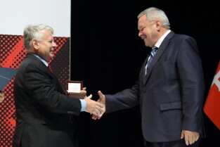 Gdańsk, 39. rocznica Porozumień Sierpniowych. Medale Wdzięczności otrzymali: Frans Timmermans, Myrosław Marynowycz i Gábor Demszky. Nz. Myrosław Marynowycz.