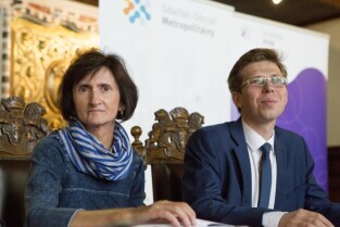 Co nam dała metropolia? Konferencja prasowa z okazji 3-lecia Gdańskiego Obszaru Metropolitalnego. Gdańsk Długi Targ, Sień Gdańska. Nz. Wójt Gminy Pszczółki Hanna Brejwo