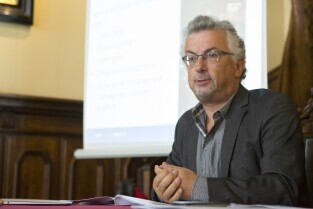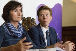 Co nam dała metropolia? Konferencja prasowa z okazji 3-lecia Gdańskiego Obszaru Metropolitalnego. Gdańsk Długi Targ, Sień Gdańska. Nz. Pełnomocnik GOM ds. ekonomii społecznej Piotr Wołkowiński