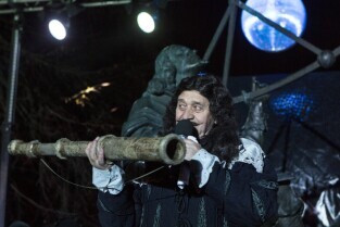 Widowisko plenerowe "405 Urodziny Jana Heweliusza". Gdańsk, Stare Miasto. Nz. Florian Staniewski jako Jan Heweliusz