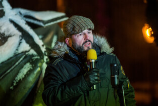 Gdańsk, Zieleniec Heweliusza przed Ratuszem Staromiejskim. 408 urodziny Jana Heweliusza. Nz. dyrektor Hevelianum Paweł Golak