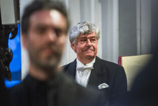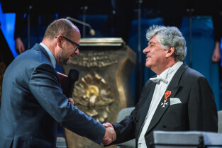 Gdańsk, Katedra Oliwska. 40 lecie Polskiego Chóru Kameralnego Schola Cantorum Gedanensis. Nz. Prezydent Gdańska Paweł Adamowicz i dyrygent Jan Łukaszewski