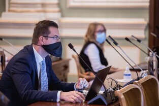 Gdańsk, ul. Wały Jagiellońskie. 42. Sesja Rady Miasta Gdańska. Nz. Cezary Śpiewak-Dowbór.