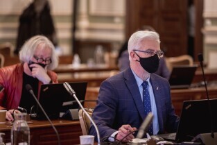 Gdańsk, ul. Wały Jagiellońskie. 42. Sesja Rady Miasta Gdańska. Nz. Radny Kazimierz Koralewski, przewodniczący klubu PiS