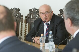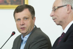 45-lecie Akademii Wychowania Fizycznego i Sportu w Gdańsku. Konferencja prasowa. Nz. Poseł do Parlamentu Europejskiego Janusz Lewandowski