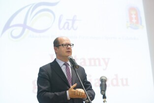 45-lecie Akademii Wychowania Fizycznego i Sportu w Gdańsku. Nz. Poseł na Sejm RP i wykładowca AWFiS Leszek Blanik