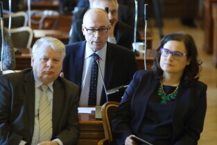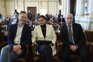 Gdańsk. 49 nadzwyczajna sesja Rady Miasta Gdańska. Nz. Europoseł Jarosław Wałęsa, Posłanka Małgorzata Chmiel i Europoseł Janusz Lewandowski.