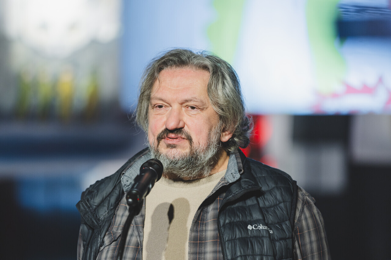 Gdańsk, M2WŚ. 4. rocznica rozpoczęcia pełnoskalowej wojny w Ukrainie - wernisaż wystawy i konferencja. Nz. Vlad Troitsky – kurator wystawy