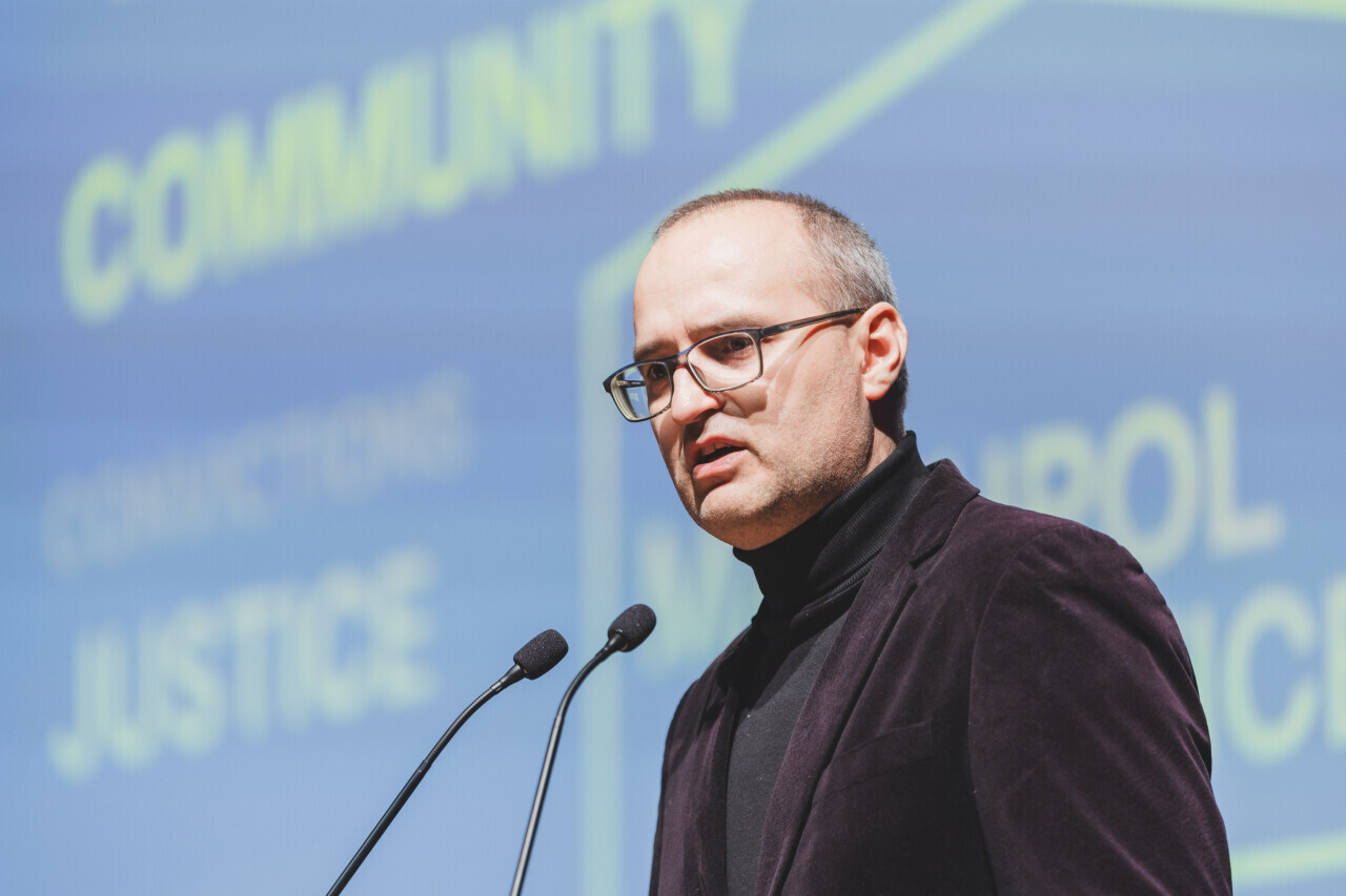 Gdańsk, M2WŚ. 4. rocznica rozpoczęcia pełnoskalowej wojny w Ukrainie - wernisaż wystawy i konferencja. Nz. Emil Rojek - Wicewojewoda Pomorski