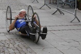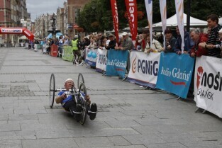 Gdańsk, Długi Targ. 50 edycja Biegu Westerplatte. Nz. Bogdan Król (I miejsce, kat. Klasyfikacja Wózków, Integracyjny Klub Sportowy, Orneta)