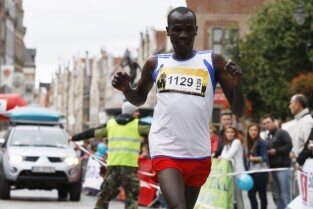 Gdańsk, Długi Targ. 50 edycja Biegu Westerplatte. Nz. Joel Komen (I miejsce, kat. M20)
