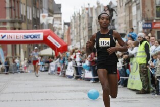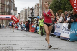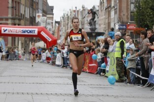Gdańsk, Długi Targ. 50 edycja Biegu Westerplatte. Nz. Olga Dubovskaya (I miejsce, kat. K20, Dinako, Grodno)