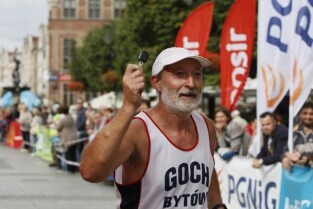 Gdańsk, Długi Targ. 50 edycja Biegu Westerplatte. Nz. Adam Korol