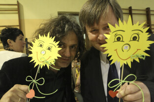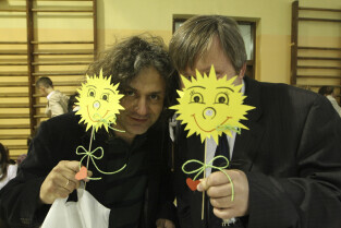 50 - lecie Szkoły Podstawowej nr 50 im. Emilii Plater przy ul. Grobla IV w Gdańsku. Nz. absolwenci szkoły Maciej Kosycarz (L) i Roman Perucki (P)