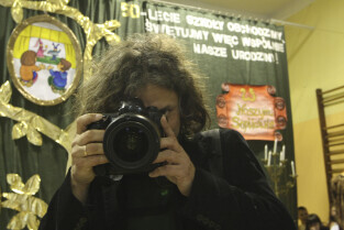 50 - lecie Szkoły Podstawowej nr 50 im. Emilii Plater przy ul. Grobla IV w Gdańsku. Nz. absolwent szkoły fotograf Maciej Kosycarz