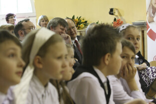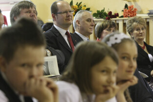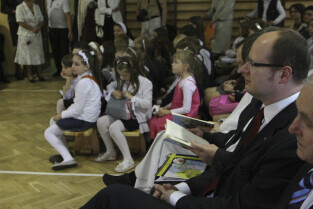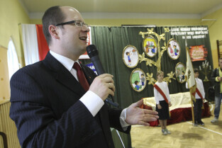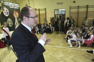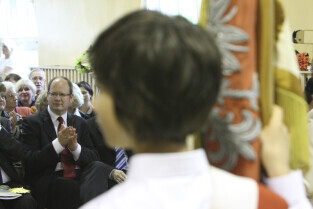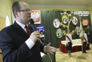 50 - lecie Szkoły Podstawowej nr 50 im. Emilii Plater przy ul. Grobla IV w Gdańsku. Nz. Prezydent Gdańska Paweł Adamowicz (absolwent szkoły)