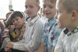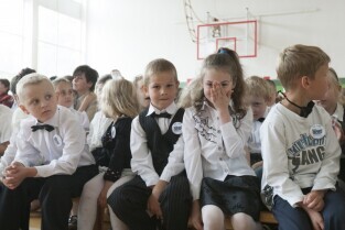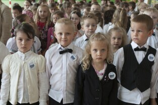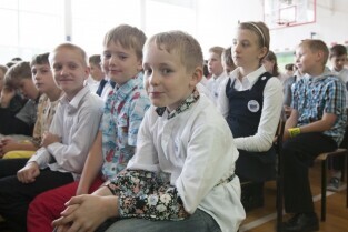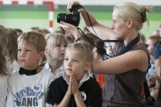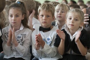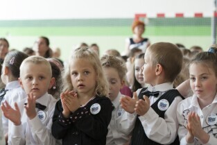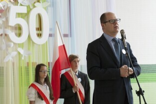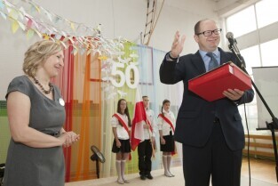 Uroczystość 50-lecia istnienia Szkoły Podstawowej nr 87 w Gdańsku Sobieszewie. Nz. Prezydent Gdańska Paweł Adamowicz