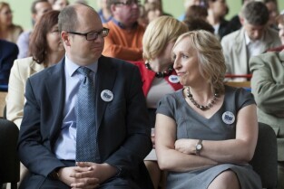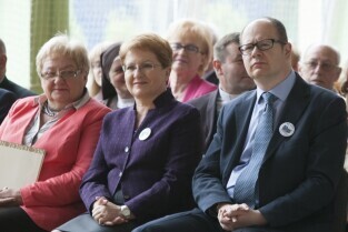 Uroczystość 50-lecia istnienia Szkoły Podstawowej nr 87 w Gdańsku Sobieszewie. Nz. od prawej: Prezydent Gdańska Paweł Adamowicz, Pomorski Kurator Oświaty Elżbieta Wasilenko, Dyrektor Wydziału Edukacji UMG Regina Białousów