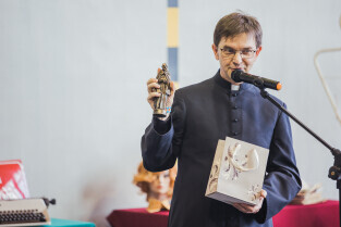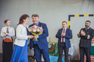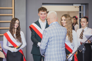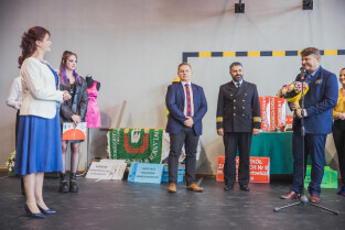Gdańsk, ul. Prezydenta Lecha Kaczyńskiego. 50-lecie Zespołu Szkół Kreowania Wizerunku. Nz. radny Andrzej Kowalczys